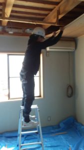 リフォームの為の内装解体です。どの現場でもそうですが、必ず解体前に現地調査を行います。建物内部の広さや状態を事前に確認し、実際に目で確認しなければ予定外の工事が発生することがあります。工事中のホコリや他の箇所に傷がつかないように作業開始前に養生をしっかりと設置します。様々なものを分別しながら解体します。作業終了後は、次に入る業者様が作業しやすいように全員で清掃して終了です。